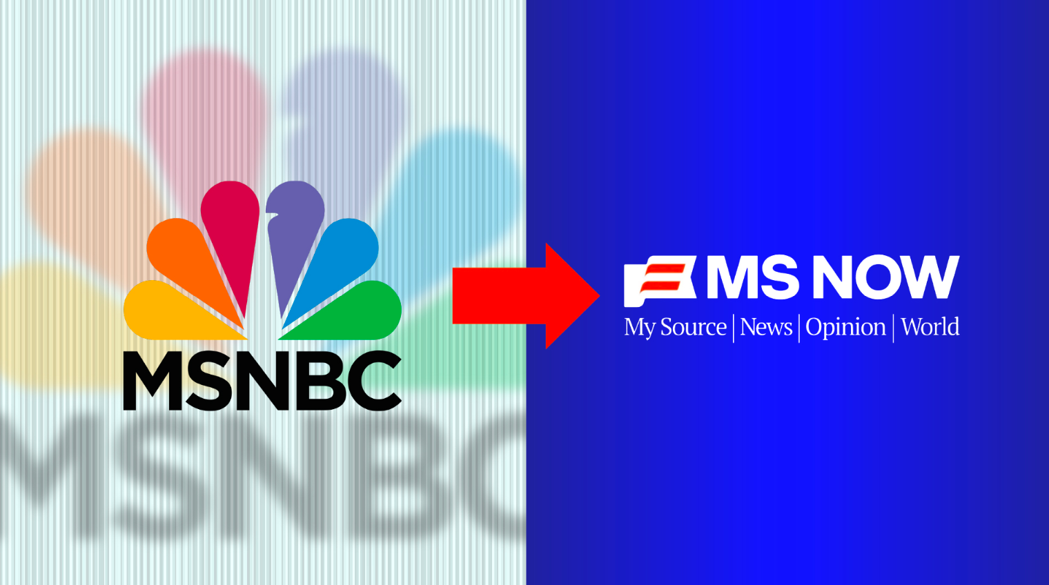 But there is always room to add insult to injury, so in being forced to ditch the immediately recognizable peacock feathers, they decided to go with the "acronym no one asked for + plus oddly discolored flag combo: (M)y (S)ource: (N)ews (O)pinion (W)orld.