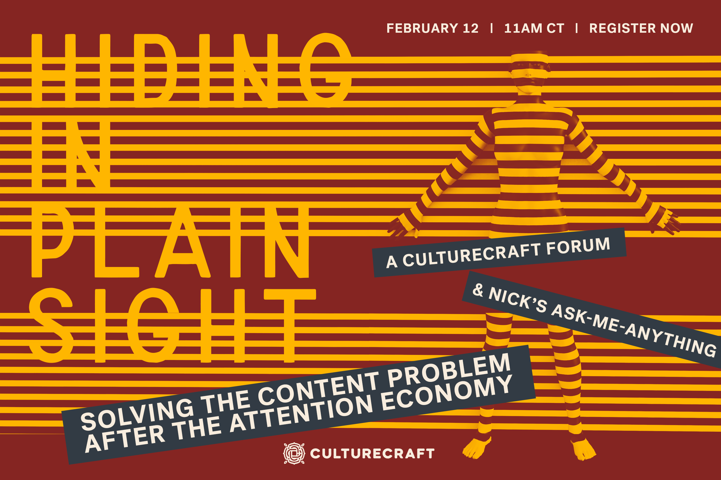So that's what we're going to do today. I'm going to offer some brief thoughts on the state of content marketing today, and then as a model of eating my own cooking, talk about where "content from Nick and CultureCraft" are headed in 2025 and some exciting upgrades you can expect as a subscriber.