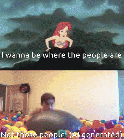 Despite my warnings, I keep posting here—like bottled letters thrown into a sea storm—because "I wanna be where the people are"... until we are all silenced by bots impersonating us with their stolen IP. (Someone should name their AI "Ursula". It's RIGHT THERE.)
